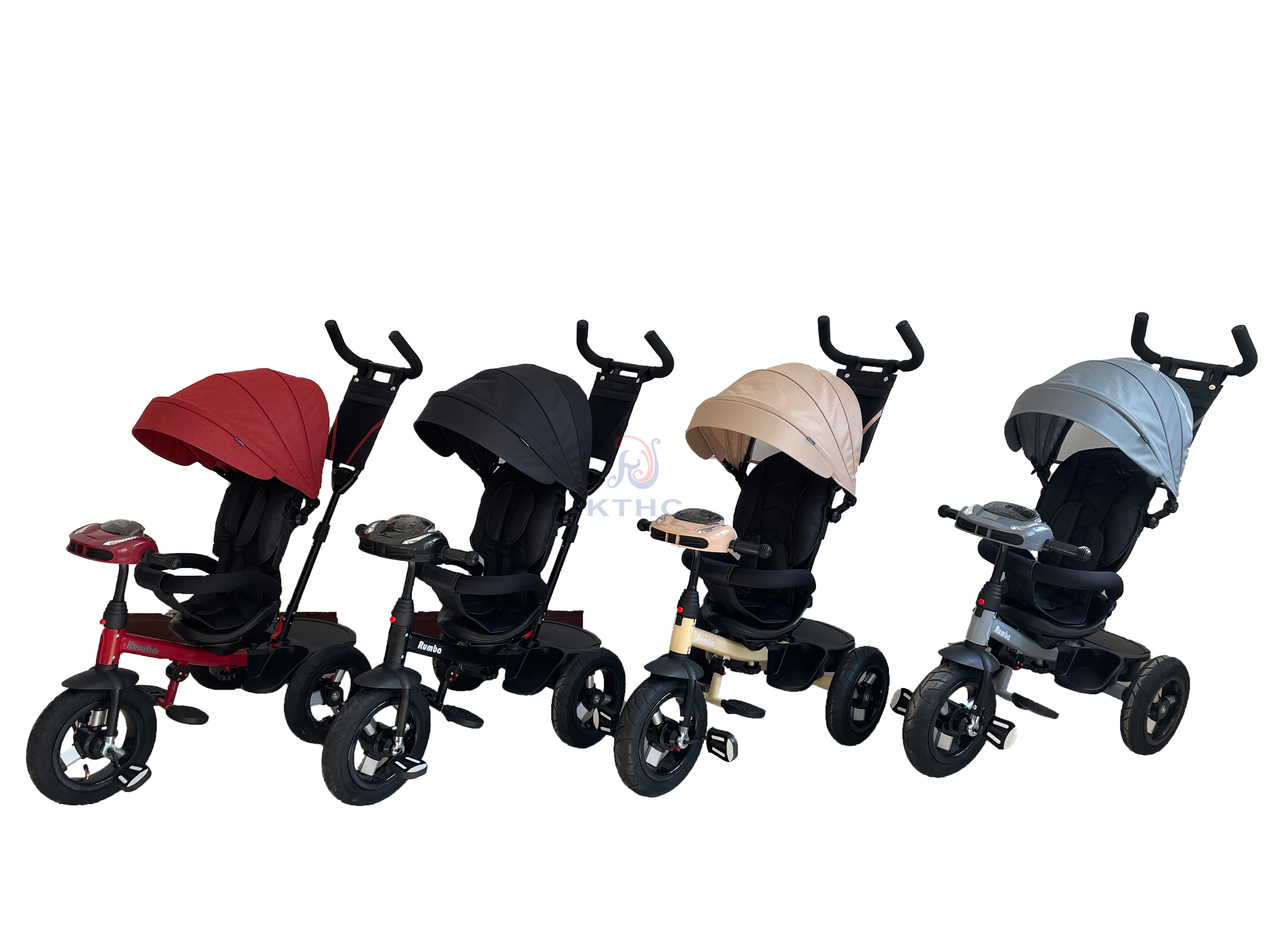 Надувные колеса. Переднее колесо 12 дюймов, задние колеса 10 дюймов,Функция свободного хода переднего колеса。 Сиденье с функцией "360...